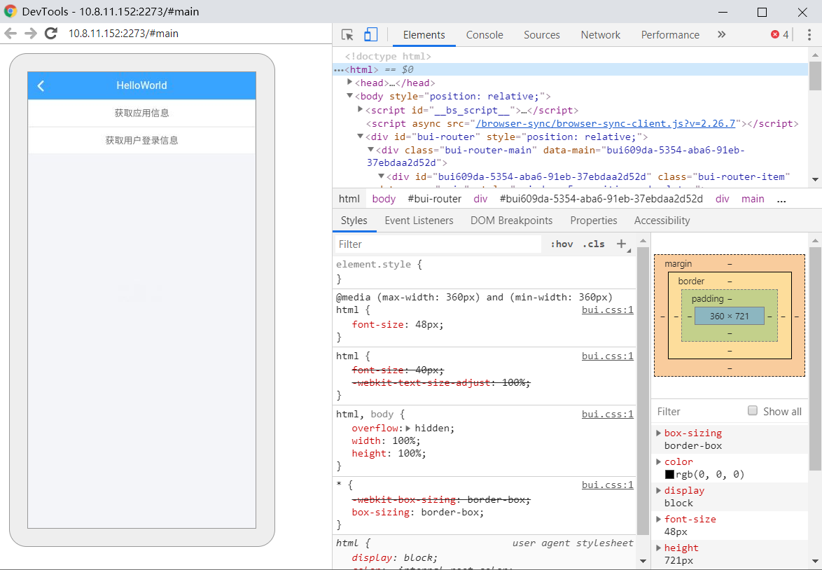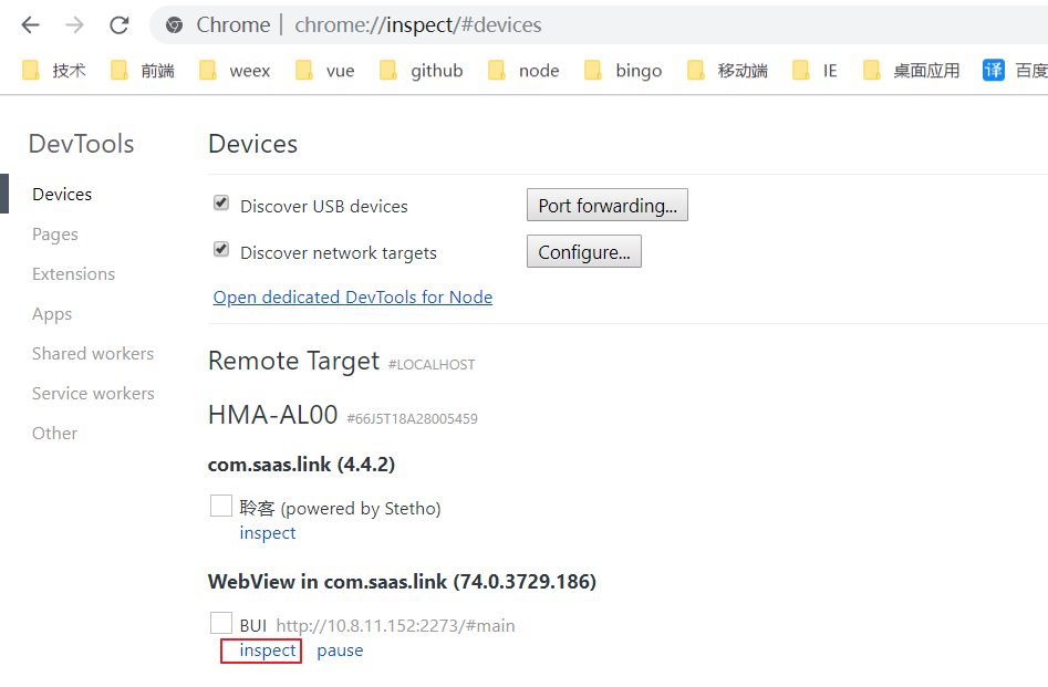 使用chrome://inspect/#devices工具进行调试, 可进行页面元素审查。