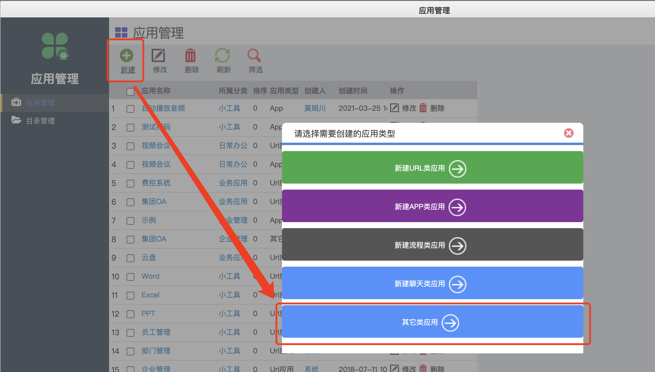 # 新建其他类应用