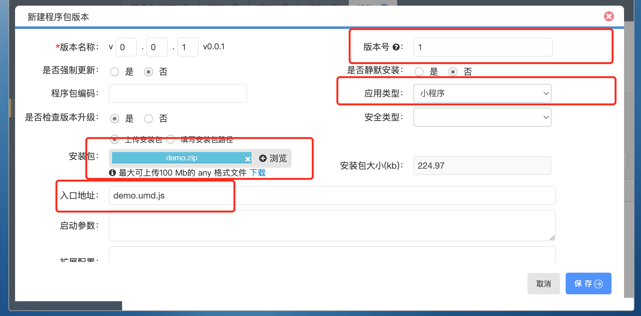 - 新建程序包版本(移动端)