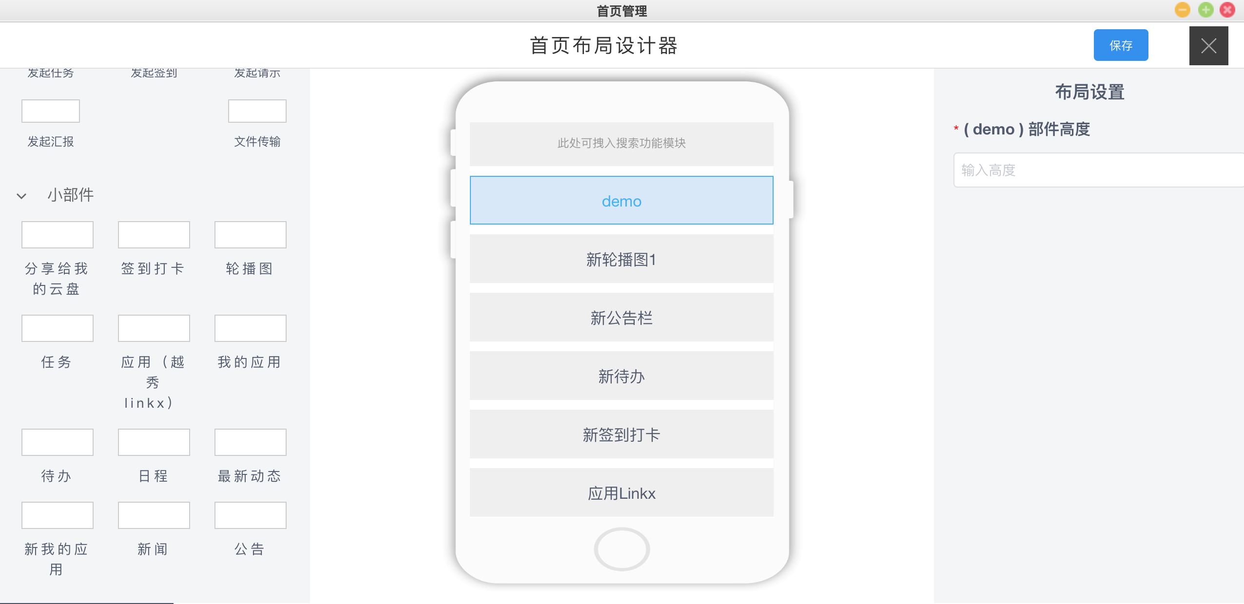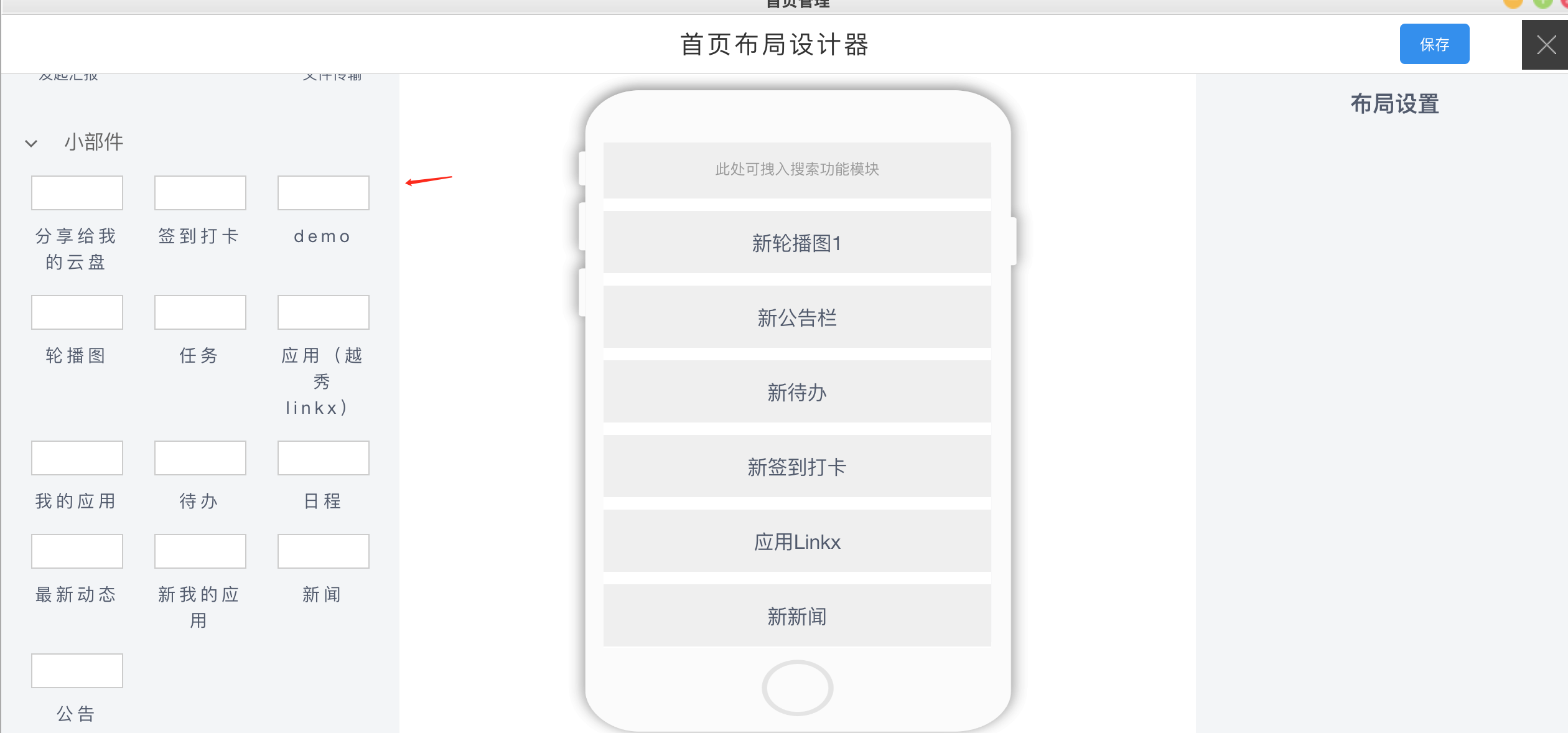 - 添加小部件到首页管理中