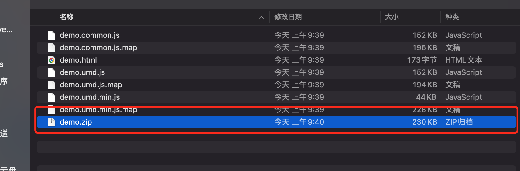 打包后,将输出文件压缩