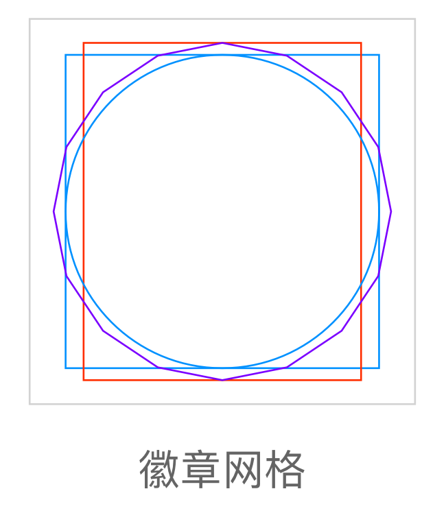 - 在图标设计中,为避免图标图形不⼀造成视觉上的不平衡,我们需要⽤到徽章栅格系统。