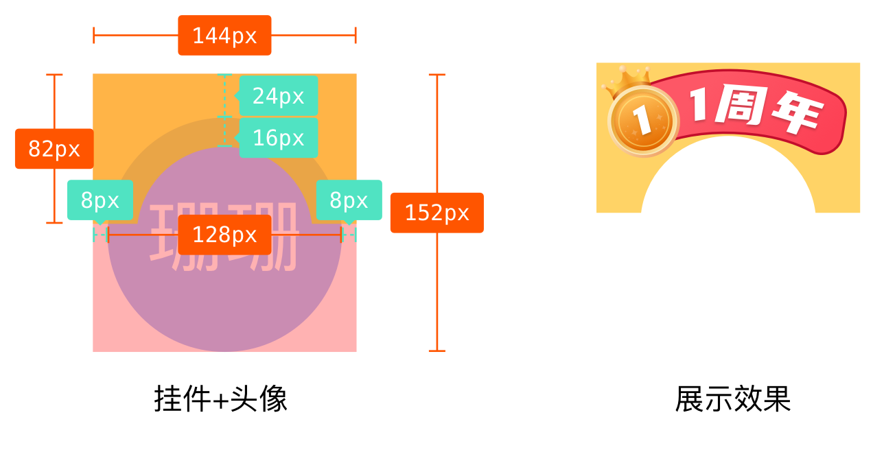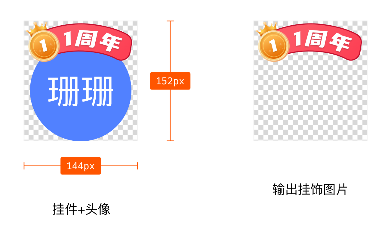 - 挂饰+头像 ⽂件尺⼨:144X152 px