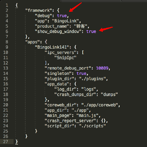 3.将下图中两个红色箭头指向的属性值改为 true,保存文件。